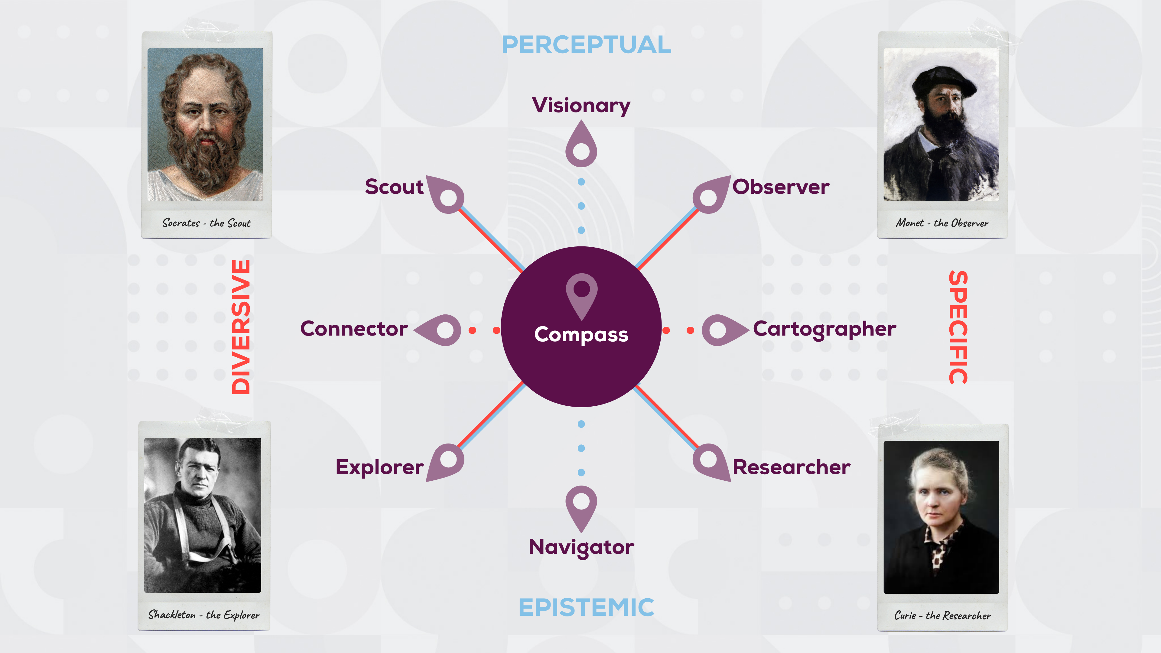 Darwin was more than a scientist. In our model, he defines a Compass, moving gracefully between curiosity’s shapes to chart an entirely new way of seeing the world.